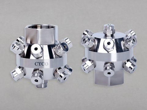 3、用于超大流量的大罐清洗,清洗直徑達6.7米的大罐。它使用大小為1/2”,3/4”或1”的全錐來改變流量