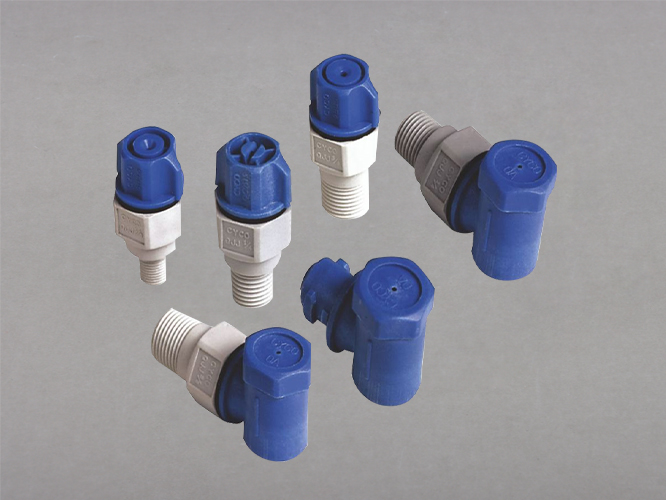 耐化學(xué)腐蝕、耐磨損:快拆噴嘴可分別采用玻璃纖維增強(qiáng)聚丙烯(含纖25%)、碳纖維增強(qiáng)聚丙烯(含纖40%)和聚偏二氟乙烯(PVDF)三種材質(zhì)制造而成,均具有強(qiáng)度高,耐磨損和耐化學(xué)腐蝕的優(yōu)點(diǎn),且都能夠防止沖洗液結(jié)塊和聚積。非常適用于磷酸鹽類、酸類、溶劑類和其它腐蝕性溶液的沖洗,漂洗和清洗應(yīng)用要求。其中,玻璃纖維增強(qiáng)聚丙耐熱高溫達(dá)82℃, 碳纖維增強(qiáng)聚丙烯耐熱高溫達(dá)到120℃而聚偏二氟乙烯是一種不加顏料的高純度材料,可保持加工環(huán)境高度凈化,7kg壓力 下耐熱可達(dá)148℃